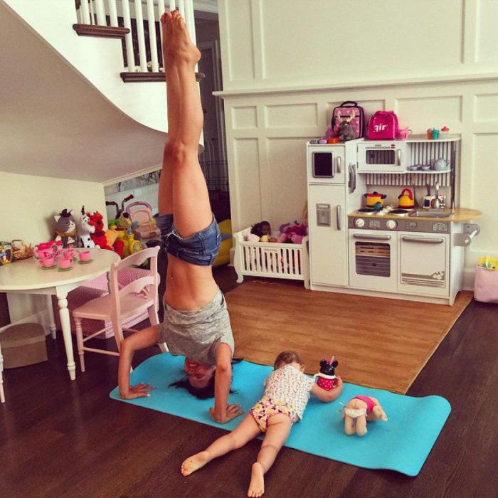 Aun estando en espera de ser mamá por segunda vez, demuestra que el yoga se puede practicar en cualquier momento, situación o lugar.