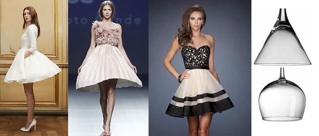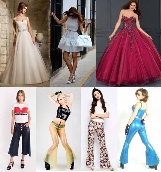 Vestido/Falda campana.- Es aquel que tiene la forma de una campana, puede ser de diferente largo. También se asemeja a una copa invertida.