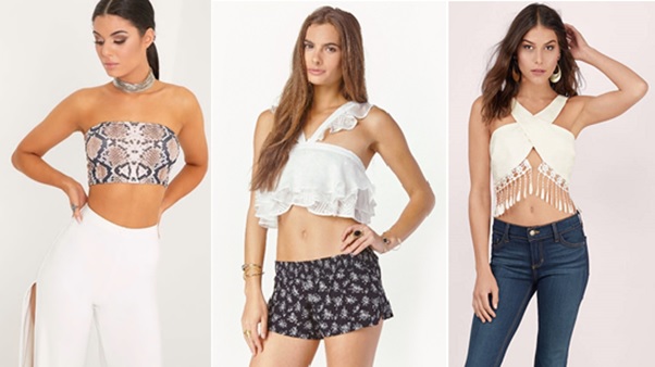 Crop top/Top.- Playera muy corta, que revela medio torso (abdomen). Es una prenda de vestir que cubre la parte superior del tronco (sin superar la altura de las axilas). Puede ser Halter.