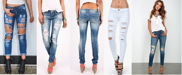 Distresses jeans.- Jeans (denims), desgastados, con agujeros, deshilachados.