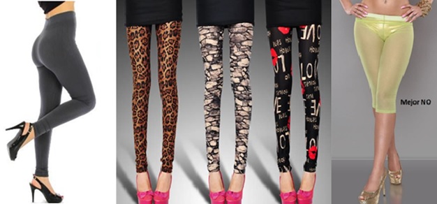 Leggins.- Prendas cómodas y versátiles, pero no son pantalones, medias, ni tipo pescador. Evitar los blancos, transparentes, y no usarlos con tops. Si tienes kilos de más, mejor usa Jeggins o Jeans. Usar ropa interior del mismo color, y los leggins prints, con la parte de arriba lisa. Hombres: absténganse.