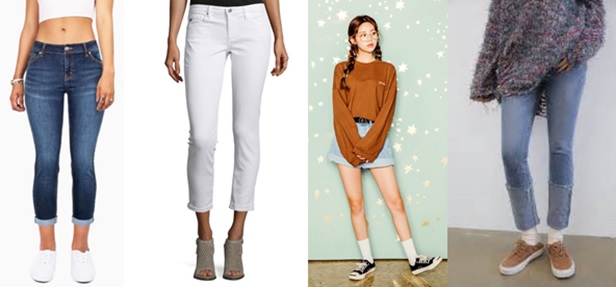 Roll-up jeans.- Jeans recogidos de abajo, incluso shorts, estilo ochentero, que dejan ver los calcetines, tobillos o piernas.