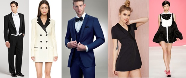 Tuxedo/Tuxedo-dress.- Esmoquin. Un Tuxedo-dress es aquella prenda que tiene al esmoquin como inspiración.