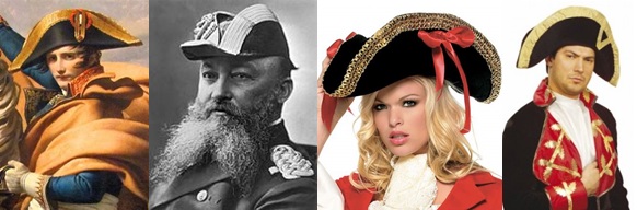 Bicornio.- Un sombrero antiguo de dos picos, que consta de un borde doblado, utilizado por las fuerzas armadas de Estados Unidos y Francia, en el siglo XVIII. Asociado con Napoleón Bonaparte.