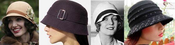 Cloche.- Un sombrero femenino en forma de campana, parecido a un sombrero de pesca, que era frecuentemente utilizado por las flappers1 en la Era del Jazz, en la década de los años 20’s. Generalmente de fieltro, de copa hemisférica, cuerpo cilíndrico y ala mínima.
