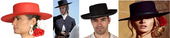 Cordobés.- El sombrero cordobés es un sombrero tradicional, fabricado en la ciudad de Córdoba, España y usado tradicionalmente en gran parte de Andalucía. La horma puede variar desde 10 a 12 cm, mientras que el ala puede variar entre los 8 y 12 cm. En cuanto a los colores, existen muchas tipologías: marrón, gris perla, verde marino, azul marino, etcétera.