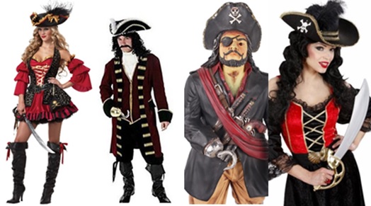 Pirata.- Como su nombre lo indica, el sombrero que usaban los piratas, bucaneros, filibusteros y corsarios. Los corsarios eran contratados por el Estado para saquear naves de países enemigos y los demás eran simples bandidos, ladrones y asesinos. En ocasiones incluía el símbolo de la calavera, con los huesos cruzados.