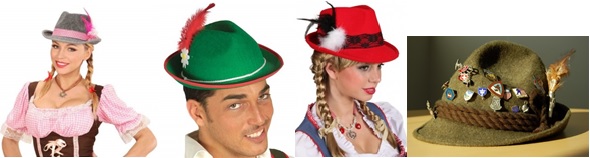 Tirolés.- El sombrero tirolés, también llamado sombrero bávaro o sombrero alpino, es un tipo de fedora, nombrado así por la región del Tirol en los Alpes. Tiene esencialmente la forma conocida como trilby. Están hechos de fieltro, con un cordón o cinta alrededor y llevan una pluma como adorno.
