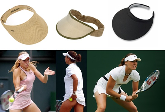 Visera.- Como se dijo al principio, en “Las parte del sombrero”, “es la superficie frontal de ciertos tipos de sombreros, que sirve para bloquear los rayos solares”, sin embargo, hay modelos que únicamente tienen la visera, y lo mínimo necesario para sujetarla a la cabeza. Se usa principalmente en algunos deportes, como el tenis.