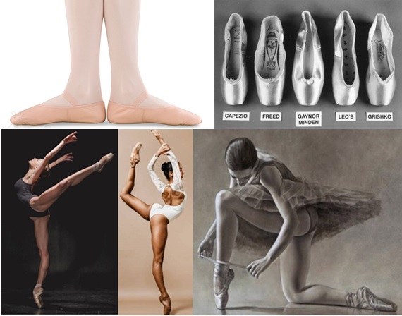 Ballet.- Son zapatillas ligeras diseñadas específicamente para la práctica del ballet. Se hacen de cuero, lona, o satén suave y tienen suelas finas y flexibles. Los zapatos de ballet están típicamente disponibles en rosa, negro, gris o blanco.
