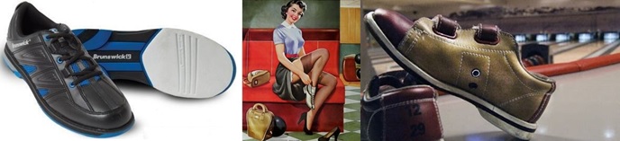 Boliche.- Los zapatos de boliche son una parte imprescindible del equipamiento, la razón es que en ninguna bolera se permite el uso de calzado de calle para jugar, pues las pistas suelen ser delicadas y se podrían estropear. Los zapatos de boliche son diferentes para cada pie: tienen una suela especial que permite el deslizamiento del pie izquierdo (en jugadores diestros) en el lanzamiento, mientras que frena el pie derecho para no resbalar. En zapatos de gama alta existe la posibilidad de intercambiar las suelas y tacones, de forma que se puede escoger el que ofrezca el mejor deslizamiento en cada bolera, por temperatura (si es más seca o húmeda), y según los productos de limpieza usados en la zona de aproximación. Existen gran variedad de marcas en zapatos como: Brunswick, Dexter, Etonic, Storm, Uriel, etcétera.