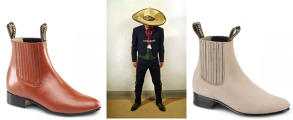 Botas de charro.- Calzado que utilizan los charros mexicanos. Botín de una pieza, las hay para hombres y mujeres charras.
