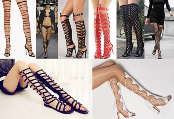 Botas de gladiador.- Botas altas, nombradas así, tomando inspiración del tipo de botas que usaban los gladiadores en la antigua Roma.