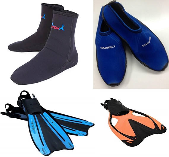 Buceo.- Ver también: Aqualetas, Escarpines y Aletas. El buceo, también denominado submarinismo, es el acto por medio del cual el ser humano se sumerge en cuerpos de agua, ya sea el mar, un lago, un río, una cantera inundada o una piscina, con el fin de desarrollar una actividad profesional, recreativa, de investigación científica o militar, con o sin ayuda de equipos especiales. El calzado para bucear son unas botas o zapatos de neopreno que protegen los pies del frío y del roce de las aletas. Los trajes de buceo suelen incluir sus propios escarpines, unidos al traje para mayor estanqueidad. Ya para nadar, se utilizan las aletas de buceo.