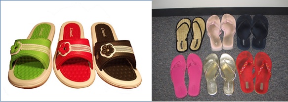 Pantuflas/Sandalias.- Calzado suave de uso doméstico. Generalmente tienen suelas finas y flexibles, con dibujos poco profundos, para prevenir resbalones en suelos lisos. Las pantuflas pueden tener la forma de un zapato (para meter en pie por arriba), o pueden no tener talón, por lo que el pie puede entrar desde atrás.