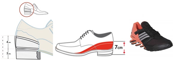Con alzas/De altura.- Tienen un realce interno que no se nota a simple vista, y que permite crecer hasta siete cm de estatura, o para corregir problemas de dismetría en el tren inferior.