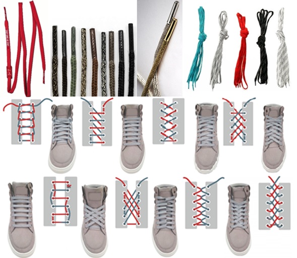 Cordones.- Los cordones, cordoneras, cintas, agujetas (México), trenzas (Venezuela), pasadores (Ecuador y Perú) o guatos (Bolivia), son un accesorio utilizado para la sujeción del calzado al pie. El cordón debe ser pasado a través de los diferentes ojales del zapato, desde la parte inferior hacia la superior. Una vez terminado este paso, se procede a realizar un nudo, con el objeto de que el calzado quede aferrado al pie. Las hay redondas, planas, tejidas, y de múltiples colores. La punta (también llamada herrete) regularmente consiste en acetato de celulosa fusionado con acetona, aunque también se pueden encontrar puntas metálicas o de PVC, fusionadas por calor. Existen muchas maneras de pasarlas por los ojales.