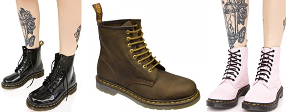 Dr. Martens.- Es una marca británica de calzado, conocida como Doctor Martens o DMs. El calzado se distingue por su exclusiva suspensión neumática, caracterizada por flores con amortiguación de aire (apodadas Bouncing Soles, algo así como Suelas Rebotantes), desarrolladas por el doctor alemán Klaus Martens. Las botas han sido especialmente populares entre escritores, skinheads (cabezas rapadas) y punks. De igual forma, resulta particular la forma superior, la construcción con ribetes, y costuras de color amarillo, en algunos modelos.