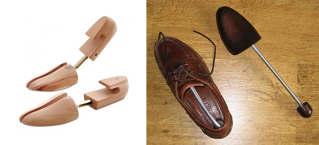 Horma.- Es el utensilio articulado que se coloca en el interior del calzado, cuando no se usa, para conservar su forma. Por lo general, consiste en una pieza rígida redondeada, que imita las dimensiones y perfil de un pie humano, la cual se introduce en la puntera del zapato y se apoya en la parte posterior del mismo, gracias a una barra rígida. En su parte trasera cuenta con un tope redondeado del mismo material, destinado a conservar la forma del talón y no dañar la piel del zapato. Las hormas más caras se fabrican en madera, generalmente de cedro, ya que ayudan a controlar el olor y a absorber la humedad. Pueden costar casi tanto como el mismo calzado, sin embargo, existen modelos más económicos y ligeros elaborados en material plástico. Usar hormas, prolonga la vida del calzado.