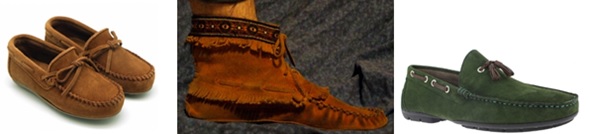 Mocasín.- El mocasín (del idioma powhatan, makasin, zapato), es un tipo de calzado masculino, de cuero y suela dura. El término proviene del calzado que utilizaban los nativos americanos, fabricado de piel sin curtir.
