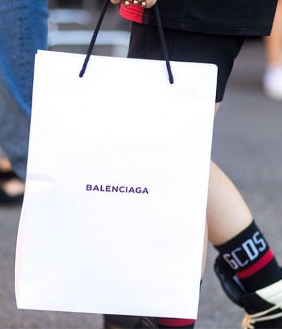 Bolsa de papel.- Aunque es de piel, la nueva bolsa minimalista de Balenciaga, nos remite a una simple bolsa blanca o negra, con el estampado de la marca, sin detalles ni alta confección, completamente diferente del resto de los bolsos de la compañía, imitando a las bolsas de papel que entregan en sus tiendas.