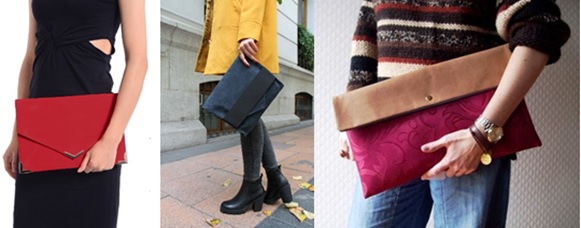 Envelope/Sobre.- Bolso que simula un sobre. Los hay de diferentes tamaños, materiales y colores.