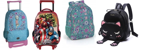 Escolar/Mochila.- Las mochilas o bolsas escolares, como su nombre lo indica, permiten guardar libros, cuadernos, lápices y demás accesorios, necesarios para las actividades escolares. Las hay de todos tipos, modelos y diseños, pudiendo ser para colgar en la espalda, o con rueditas. Similares a las Backpack.