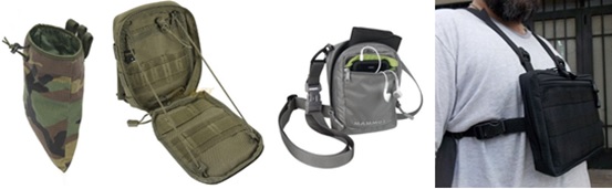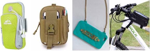 Funda para celular.- Bolso que permite guardar el teléfono celular o Smartphone. En algunos diseños se pueden guardar, además, otras cosas. Ciertos modelos están diseñados para colocarse sobre la bicicleta.