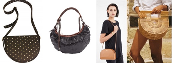 Half moon.- Como su nombre lo indica, es un bolso que tiene la forma de una media luna o una luna en cuarto creciente/menguante.