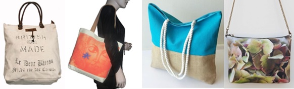 Lona/Loneta.- Bolsos multifuncionales y versátiles; los hay estampados, para el verano, la playa o la alberca, generalmente impermeables. La lona es un tejido muy pesado que se utiliza para la fabricación de velas, tiendas, marquesinas, mochilas, y otras funciones donde se requiere robustez. También es popularmente utilizada en bolsas y zapatos de moda.