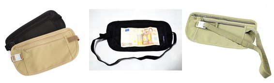 Seguridad.- Similar a una cangurera, en cuanto a que se ciñe a la cintura, pero también se pone sobre el pecho o el abdomen. Es muy delgada, sirve para guardar generalmente billetes o cheques de viajero y, precisamente por seguridad, se pone bajo la ropa.